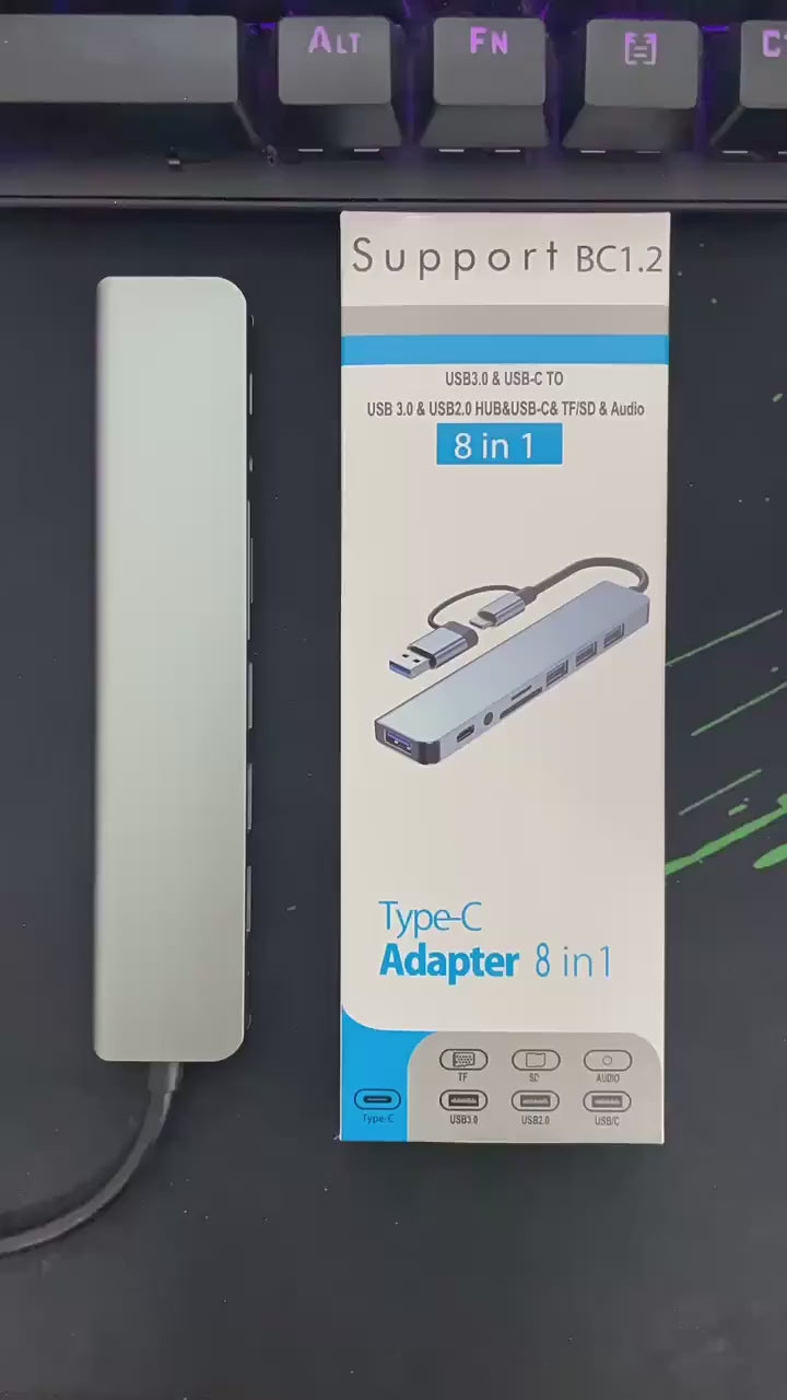 Découvrez le Hub USB 8-en-1 Multiport avec Audio et TFPD, l'accessoire indispensable pour optimiser votre espace de travail. Grâce à ses multiples ports, il vous permet de connecter facilement tous vos appareils : USB 3.0 pour une transmission rapide, sortie audio 3,5 mm pour un son clair, et support TFPD pour une compatibilité étendue. Son design élégant et compact s'intègre parfaitement à votre ordinateur, tout en offrant une performance fiable et efficace. Simplifiez votre quotidien numérique avec ce hub polyvalent, pratique et élégant !